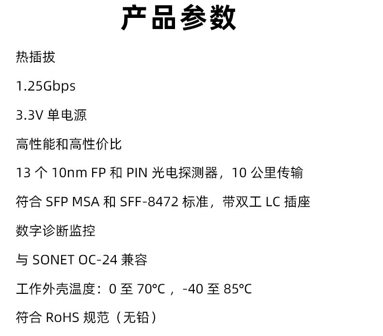 HZTS1LR光模塊支持熱插拔SFP 收發(fā)器