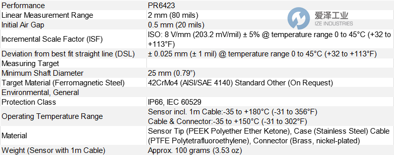 EPRO傳感器PR6423系列PR6423/000-000技術(shù)參數(shù)及介紹