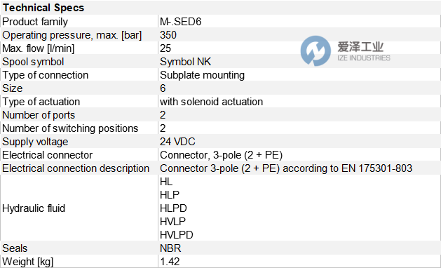 REXROTH閥M-2SED6NK1X/350CG24N9K4 R900058247技術(shù)參數(shù)