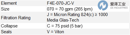 PTI濾芯F4E-070-JC-V技術(shù)參數(shù)