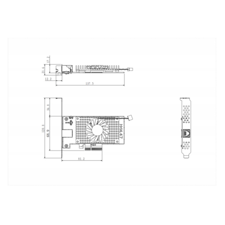 GT-7G10 杭州華??萍?路萬兆網口工業(yè)相機用PCIE供電數據采集卡 結構尺寸圖(mm):