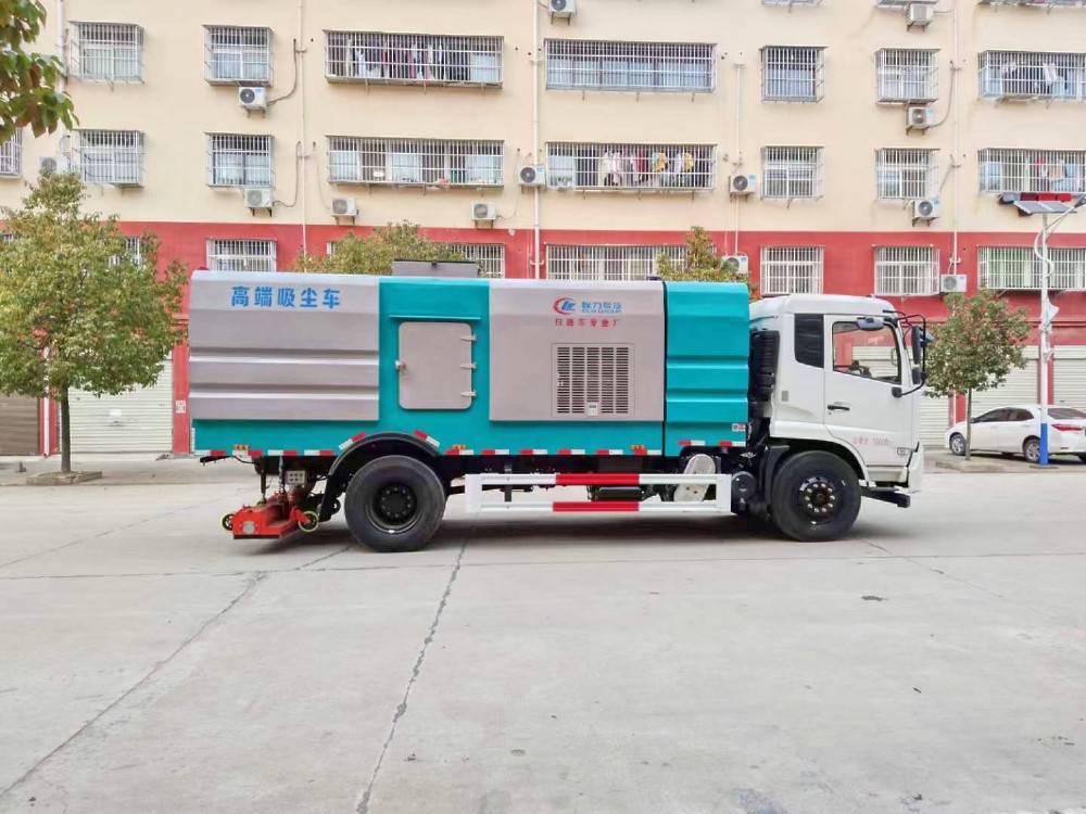 1.采用吸掃混合的方式收集垃圾,濕式除塵、電液控制,液壓傾翻卸料的作業(yè)方式對(duì)路面進(jìn)行清掃作業(yè)。