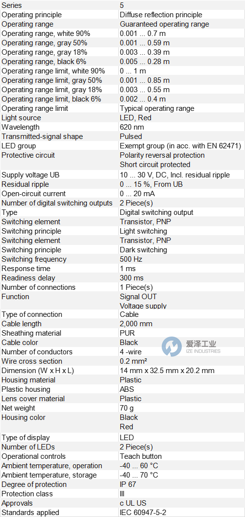 LEUZE傳感器ET5.3/4P 50122579技術(shù)參數(shù)