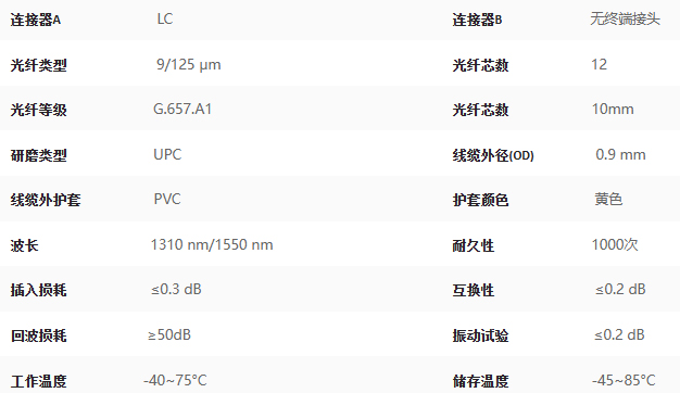 2m 12芯 LC/UPC 單模 束狀圓纜光纖尾纖