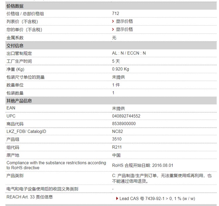 出口管制規(guī)定 | AL | N / ECCN | N |