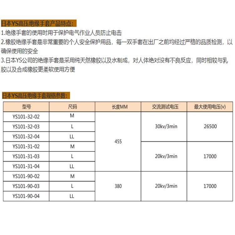 規(guī)格型號(hào) | YS101-31-02絕緣手套 | ||