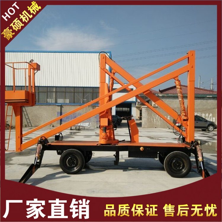 拖車曲臂式升降機(jī):可以掛在汽車上,與汽車同步,適合野外高空作業(yè)。升降方式:1、用380-220V電源2、用電源不方便,可以用電瓶驅(qū)動(dòng)升降。外型美觀,行走方便。