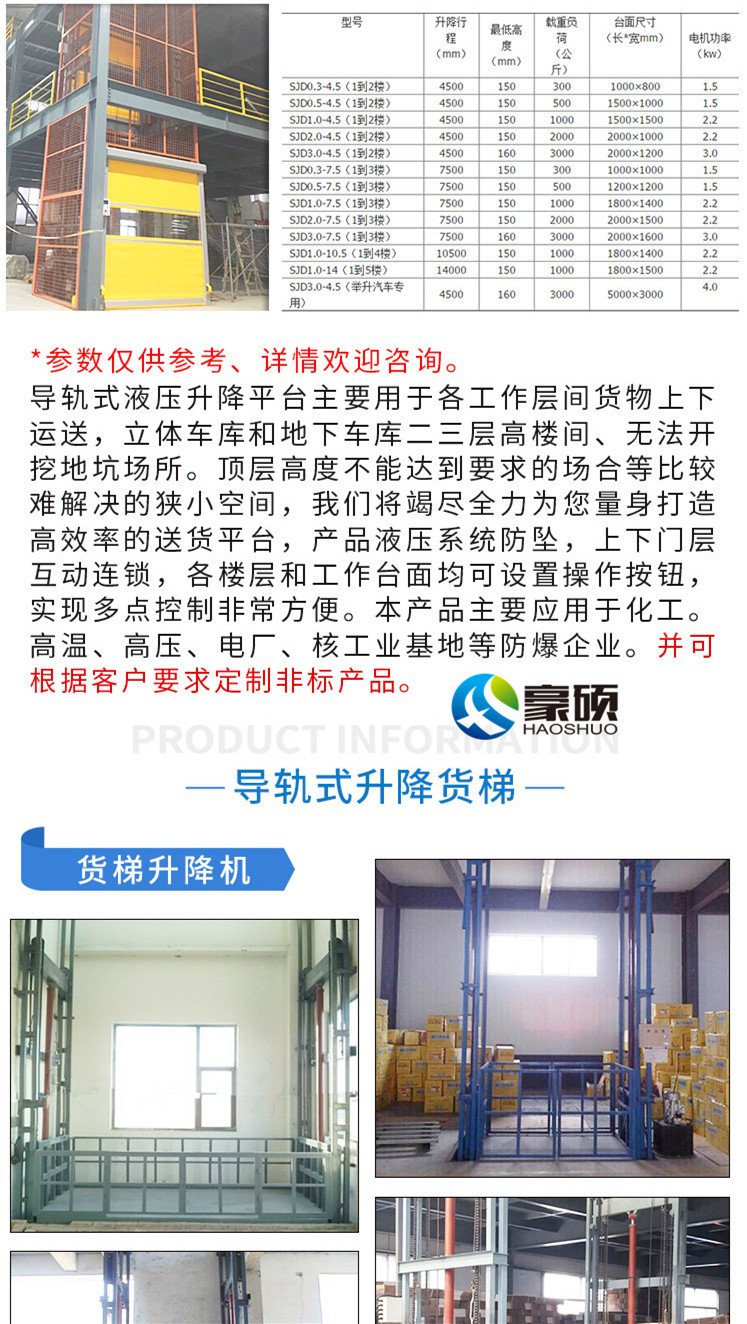 豪碩固定導(dǎo)軌鏈條式升降機(jī)-導(dǎo)軌式液壓升降平臺貨梯生產(chǎn)廠家