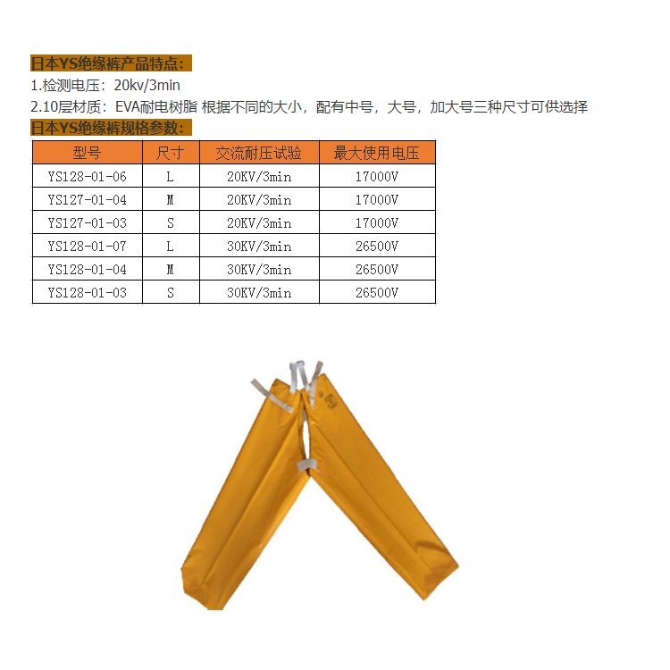 帶電作業(yè)YS高壓絕緣褲YS127-01-03電力檢修絕緣服