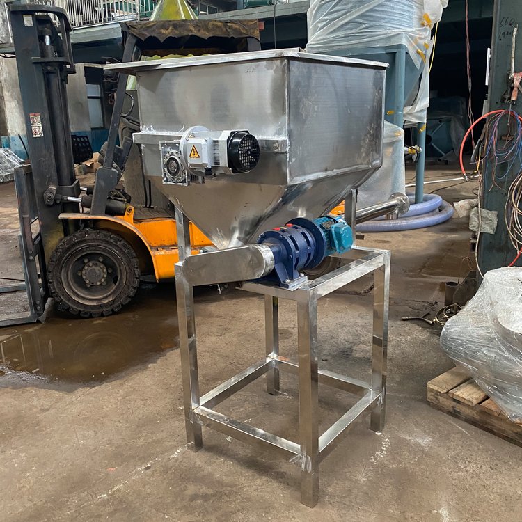 本機(jī)對流動性較差的粉末狀、纖維狀和片狀物料。所有與物料接觸的部件均采用不銹鋼制作,該喂料機(jī)易于清理和更換部件。配備水平攪拌改善物料向螺桿推進(jìn)部的流動。對流動性差、容易架橋的物料會配置垂直攪拌