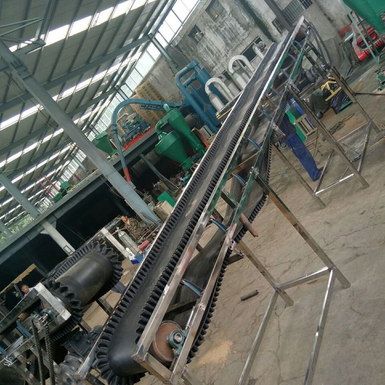 U型托輥輸送機,br />大傾角裙邊輸送機廣泛用于煤炭、冶金、建筑、糧食、化工、電力等部門,具有通用帶式輸送機結(jié)構(gòu)簡單、運行可靠,維修方便等優(yōu)點,還具有可大傾角輸送,結(jié)構(gòu)緊湊,占地少等優(yōu)點。作為一般用途的散狀物料連續(xù)輸送設(shè)備,但由于其采用的是具有波伏擋邊和橫隔板的輸送帶,是大傾角(或垂直)輸送的理想設(shè)備