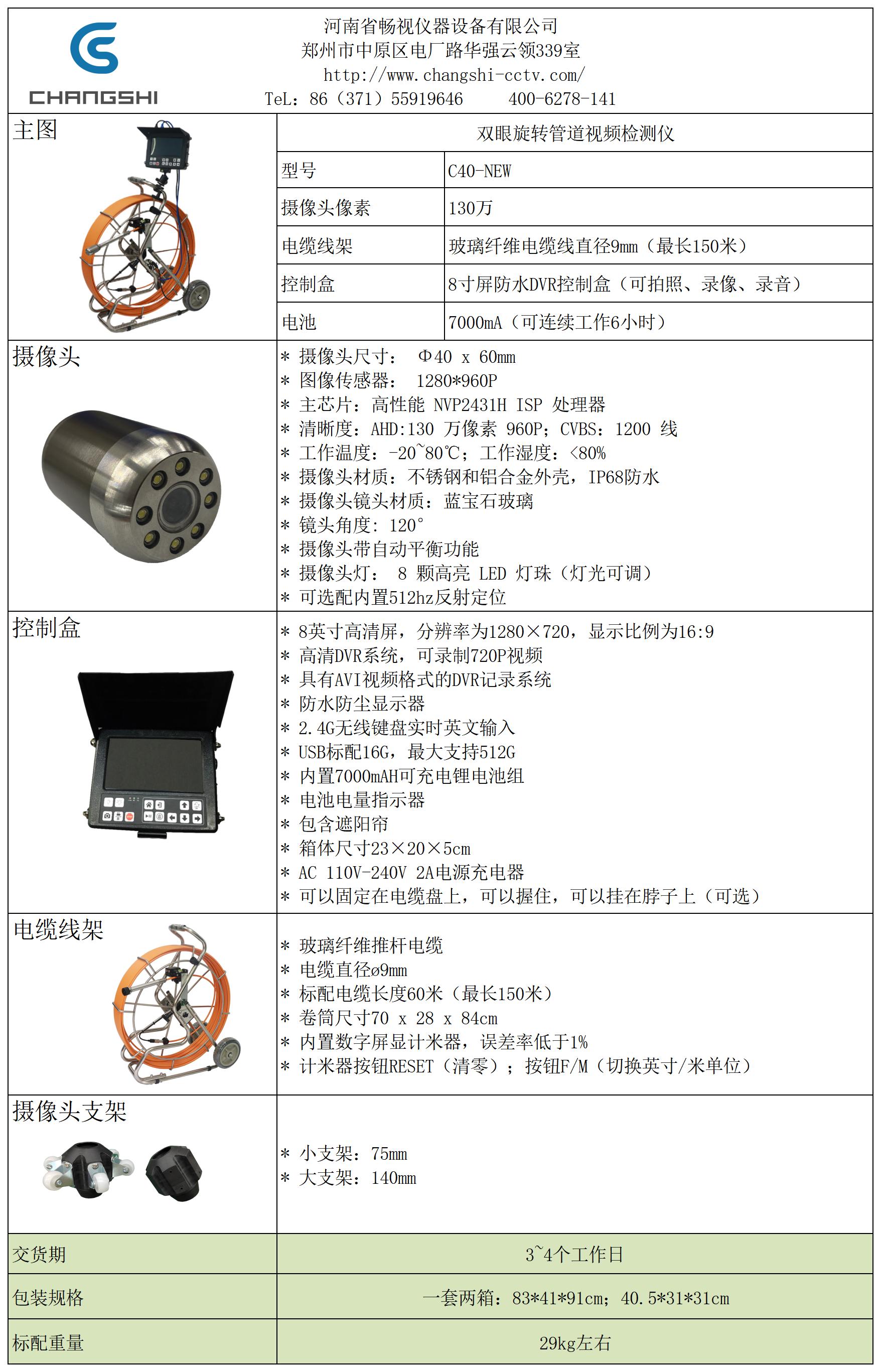 暢視管道檢測內窺鏡高清攝像頭防水等級高快速相應C40-NEW