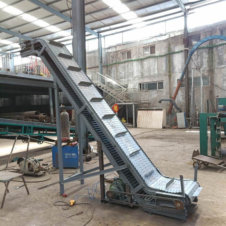 皮帶輸送機,br />大傾角裙邊輸送機廣泛用于煤炭、冶金、建筑、糧食、化工、電力等部門,具有通用帶式輸送機結構簡單、運行可靠,維修方便等優(yōu)點,還具有可大傾角輸送,結構緊湊,占地少等優(yōu)點。作為一般用途的散狀物料連續(xù)輸送設備,但由于其采用的是具有波伏擋邊和橫隔板的輸送帶,是大傾角(或垂直)輸送的理想設備