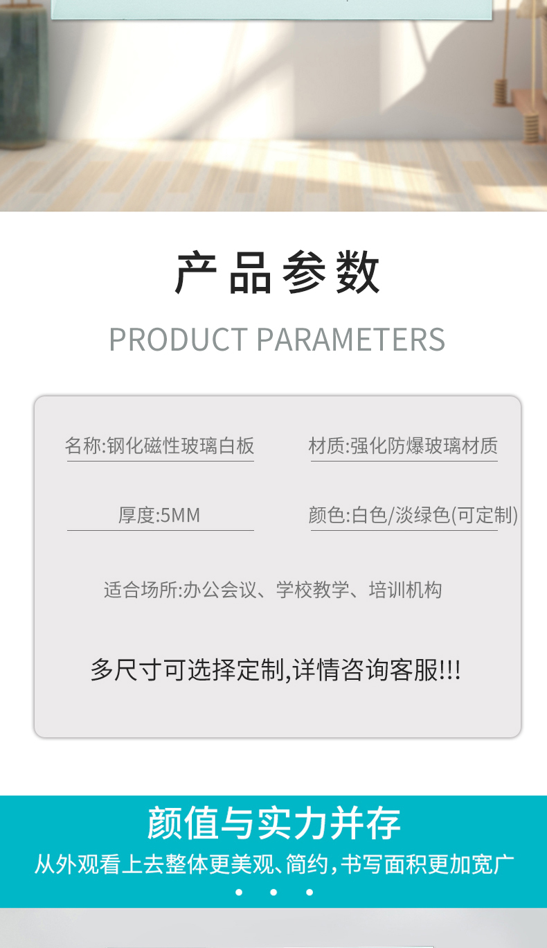 方圓鋼化玻璃白板壁掛式寫字板辦公室會議培訓教學家用黑板記事板