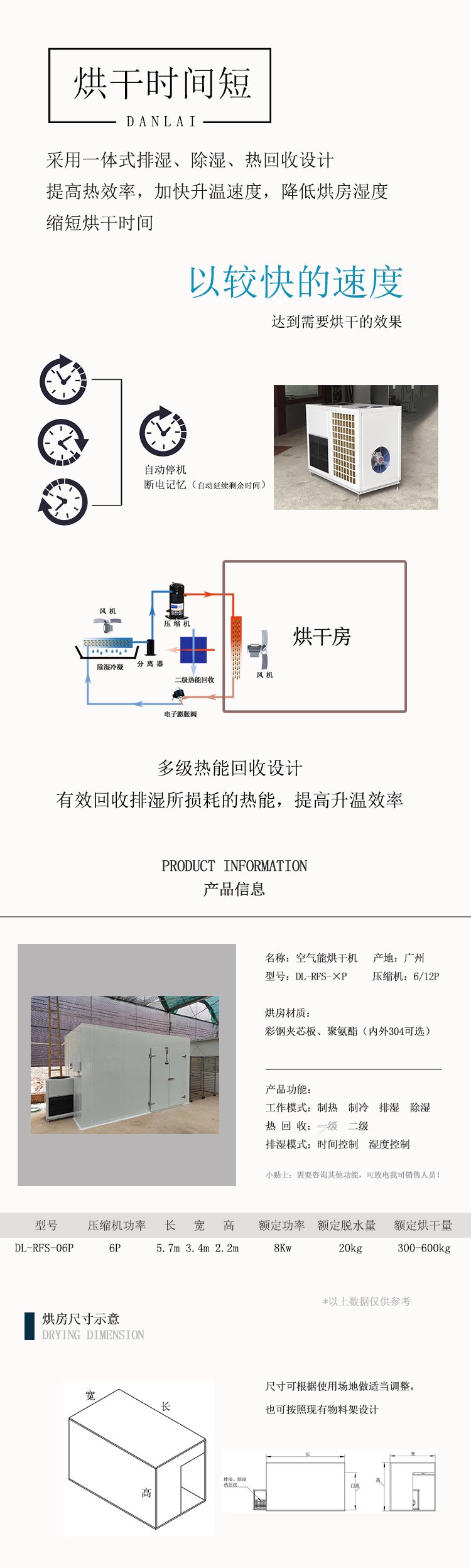 烘房尺寸 | 5.7×3.45×2.2m | ||