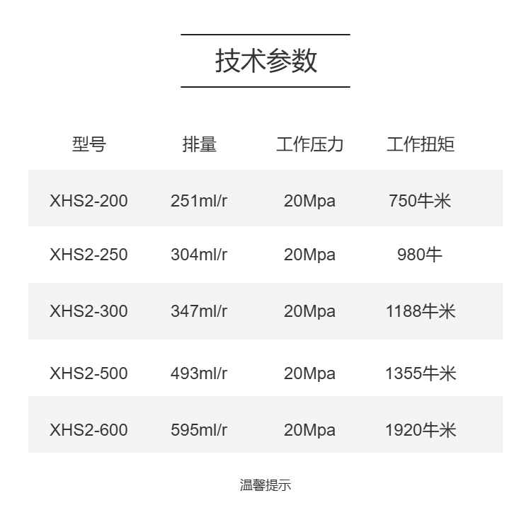 5、XHS2-500液壓馬達(dá)壓力高,最高壓力可達(dá)45MP。重量輕、體積小、比功率高。