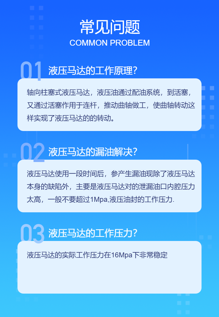 4、由于活塞與軸承套通過(guò)卡環(huán)貼牢不存在間隙,因而該系列液壓馬達(dá)可以做泵工況下運(yùn)轉(zhuǎn),當(dāng)進(jìn)油口封閉后馬達(dá)可在自由論工況下高速運(yùn)轉(zhuǎn)。