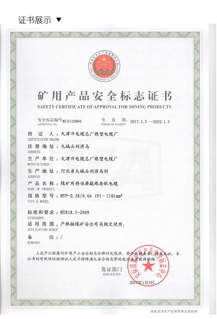 產(chǎn)品認(rèn)證 | MT818.5-2009 | ||