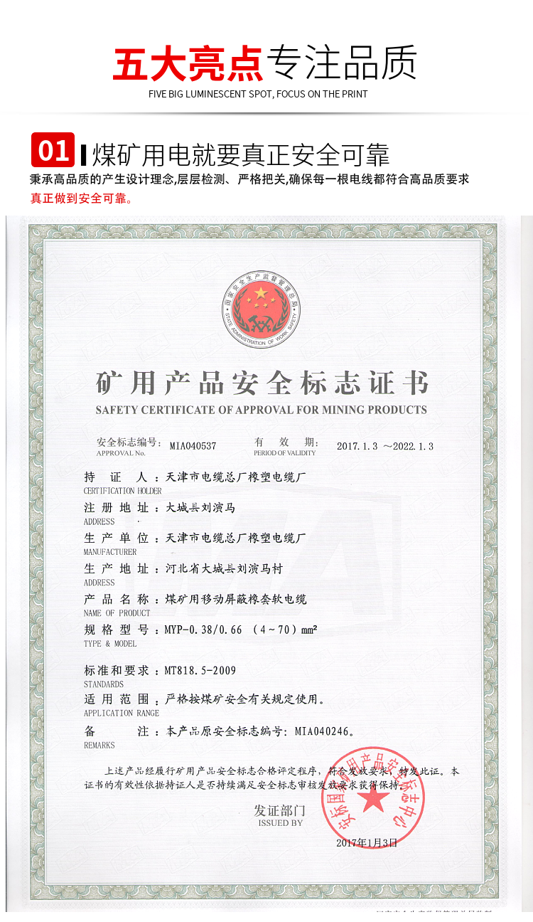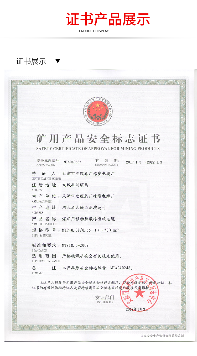 產(chǎn)品名稱 | 采煤機(jī)移動線 MYP 380/660v | ||