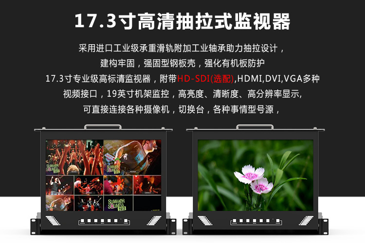 TY-1700HD高清抽拉屏17.3監(jiān)視器液晶1U折疊機架式顯示器
