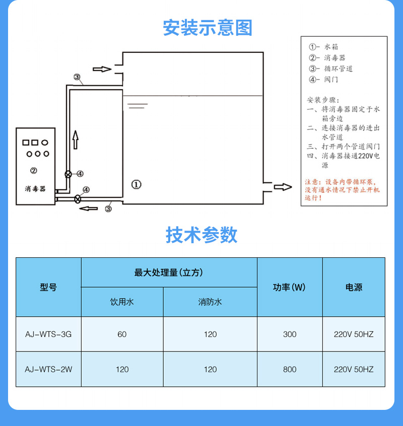 外置水箱臭氧消毒器不銹鋼WTS-2W自潔消毒器生活用水
