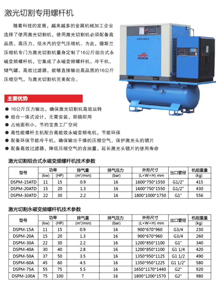 德斯蘭永磁變頻螺桿式空壓機(jī)工業(yè)級節(jié)能螺旋式空氣壓縮機(jī)靜音氣泵