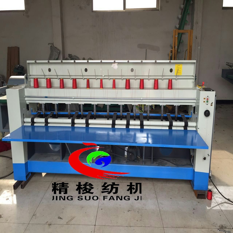 該機(jī)由上機(jī)針大梁,下鉤針軸系統(tǒng),鐵羅拉,減速半軸,立軸等主要部分組成。工作原理是由上針向下送線,下針鉤線,循環(huán)工作不用底線系鏈結(jié)構(gòu)進(jìn)行縫制。 該機(jī)適用范圍:個(gè)體加工網(wǎng)套及專業(yè)加工被套等,電動(dòng)絎被機(jī)結(jié)構(gòu)緊促,調(diào)整簡(jiǎn)單,它適用于加工棉被,棉門(mén)簾,果蔬大棚,以及冷凍食品的外包裝,所縫的單線鏈?zhǔn)桔E,具有線跡美觀,線鏈牢固,富有彈性,拆線方便等優(yōu)點(diǎn)。是棉被加工和外包裝加工的理想機(jī)具。