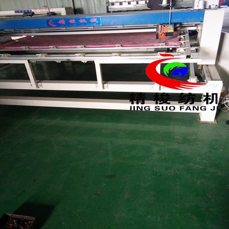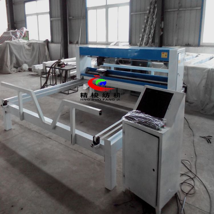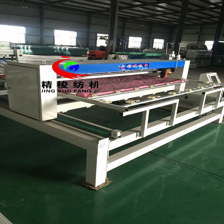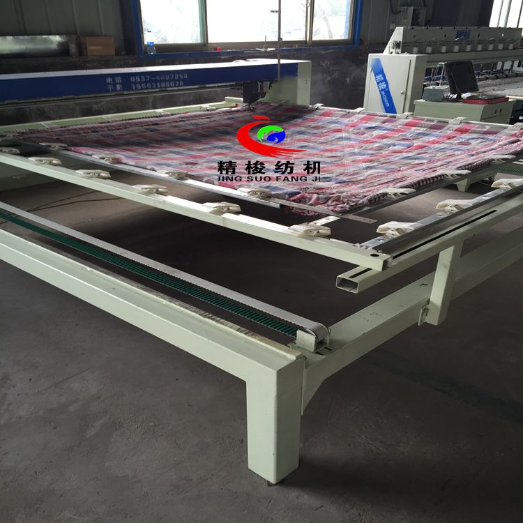 全自動電腦絎縫機(jī)介紹:用于被子、床罩、窗簾、服裝等圖案的絎縫。在原有基礎(chǔ)上具有占地面積小,機(jī)械晃動小,精度高等優(yōu)點(diǎn),電器配置性能高。起始終點(diǎn)能自動補(bǔ)針,花型能放大、縮小,針距可調(diào)、細(xì)化。 電腦絎縫機(jī)是絎縫機(jī)與電腦操作系統(tǒng)的結(jié)合。中國在90年代中期才掌握此項(xiàng)技術(shù)。填補(bǔ)了中國絎縫業(yè)電控系統(tǒng)的技術(shù)空白。他的誕生解決了普通絎縫機(jī)無法逾越的難題。 電腦絎縫機(jī)在其精確的電腦系統(tǒng)控制下,能完美地處理整個坐標(biāo)系上所編制的各種復(fù)雜圖案,在其生產(chǎn)速度、機(jī)械性能、噪音污染等指標(biāo)上,都是以往絎縫機(jī)械不可以比擬的。 電腦絎縫機(jī)和絎縫機(jī)原理相同。都是以XY—Z型運(yùn)動的系統(tǒng)。XY軸控制機(jī)頭的運(yùn)動,Z軸控制機(jī)頭的絎縫。(1)Z軸方向運(yùn)動——絎縫針上下的運(yùn)動。(2)X軸方向運(yùn)動——絎縫機(jī)的機(jī)頭左右運(yùn)動。(3)Y軸方向運(yùn)動——絎縫機(jī)的機(jī)頭前后運(yùn)動。