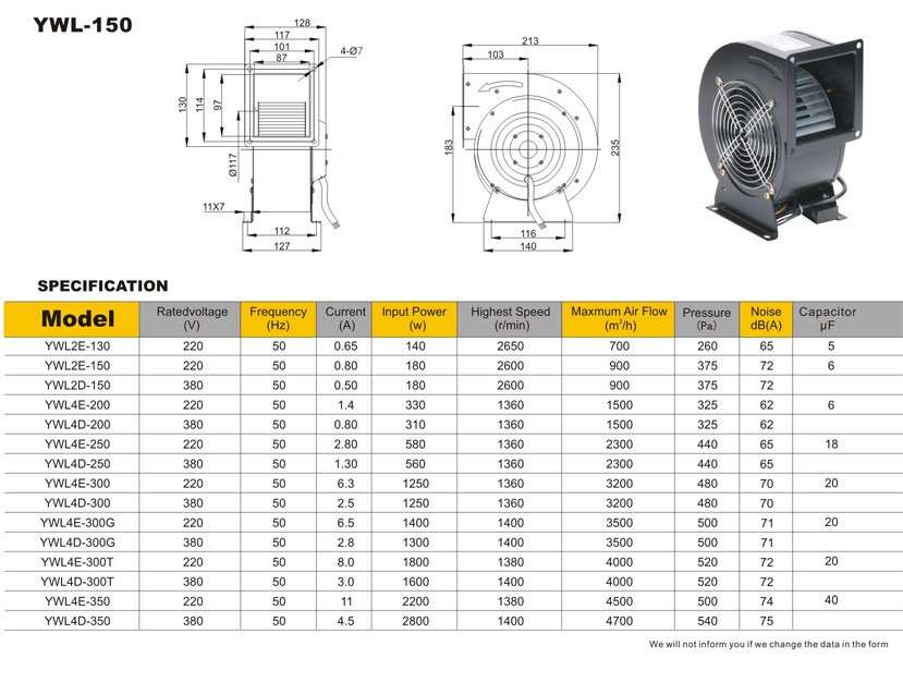 ④風(fēng)機葉輪直徑:150--葉輪直徑為150mm